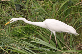 ダイサギは、川沿いの草むらを、首を伸ばして覗き込みながらカエルを食べまくりです。
