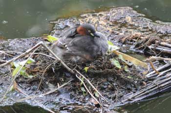 昨日の雨風に負けず、カイツブリの親はしっかりと卵を守っているようです。頑張れ!
