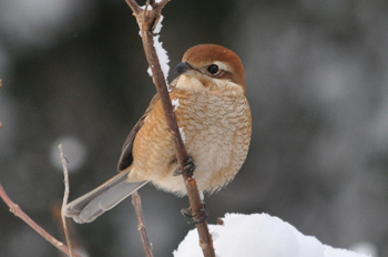 いつも見慣れているモズです。モズは、大阪府のホームページによると、「大阪の鳥」となっており、堺市にある「百舌鳥」の地名は、「仁徳陵築造の際、倒れたシカの耳から、もずが飛び去ったことから『百舌鳥耳原』 とした」(日本書紀)のが由来とのことでした。